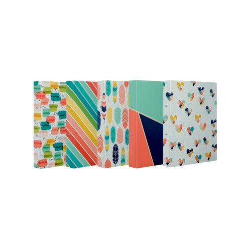 Pukka's Fashion Filing range includes assorted prints of: Hearts, Geometric, Feathers, Stripes and Colourwash; made from high quality, practical paperboard. The A4 Ring binder files feature a standard D ring mechanism with coordinated interior linings. Supplied in a pack of 10.